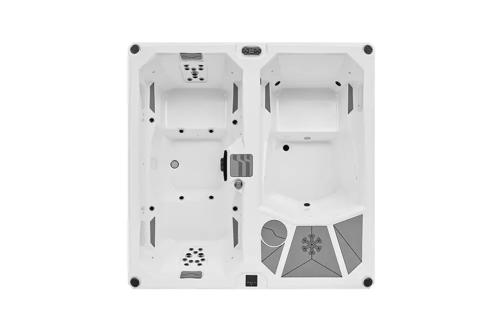 Ключевое преимущество модели — наличие двух изолированных чаш с полностью автономным управлением. Первая секция оборудована производительной системой охлаждения (1 л.с.) для холодных погружений, а вторая — нагревателем мощностью 2 кВт для тепловой релаксации. Два независимых блока управления (на базе систем Balboa или Joyonway) позволяют пользователю точно регулировать температуру и режимы работы в каждой части бассейна отдельно.